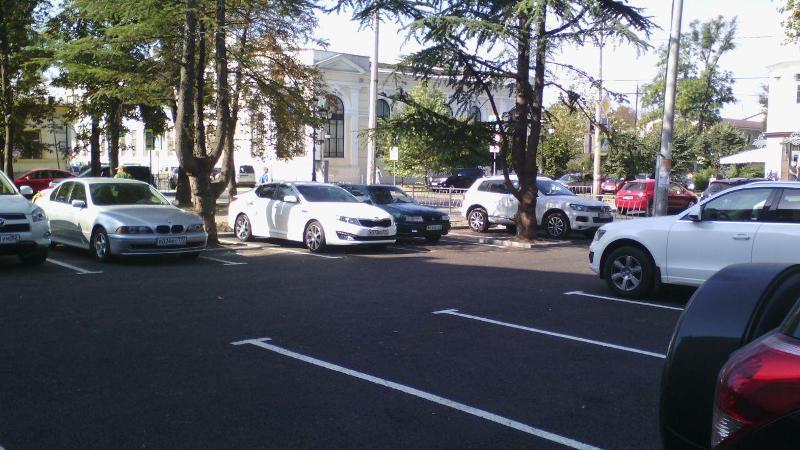 Уже сейчас на этой стоянке почти нет свободных мест. Тем не менее, количество автомашин, припаркованных на обочинах дорог по улицам Жуковского и Горького, не уменьшилось. Вдоль проезжей части у бордюров по-прежнему нет ни одного свободного места.