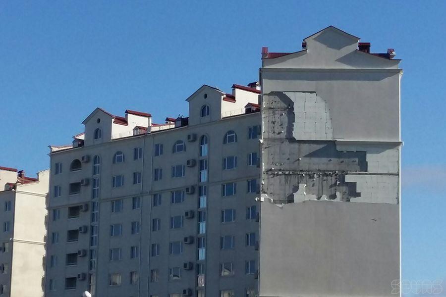 Внешне теперь здание похоже не на новостройку, которой по сути является, а на старое разбитое здание общаги.